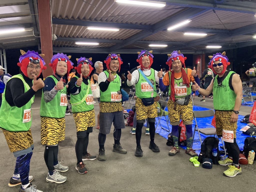 開会式でペースメーカー=赤鬼と紹介いただいていたのでチャレンジャーの皆さんには「やべえ、鬼に追いつかれた」と第一声をいただいた後に、「次のエイドは◯◯で」とか「この先こんな感じで」など色々なお話ができました。
