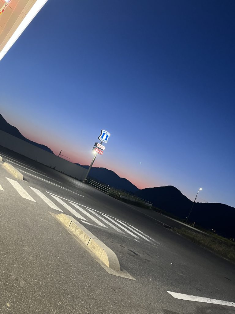 ※写真は小休憩中のコンビニの駐車場から撮ったものです。本当は夜が明ける前にゴールしたかったのですが、結局夜が明けてしまいました。